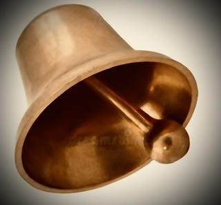One morning the kind of massive bronze dinner bell, a farmer’s wife used to clang to bring a dozen sons in from the fields hung from the kitchen ceiling on a silver chain. A large silver plate was screwed into the bell with “B-A-M” engraved in black letters.